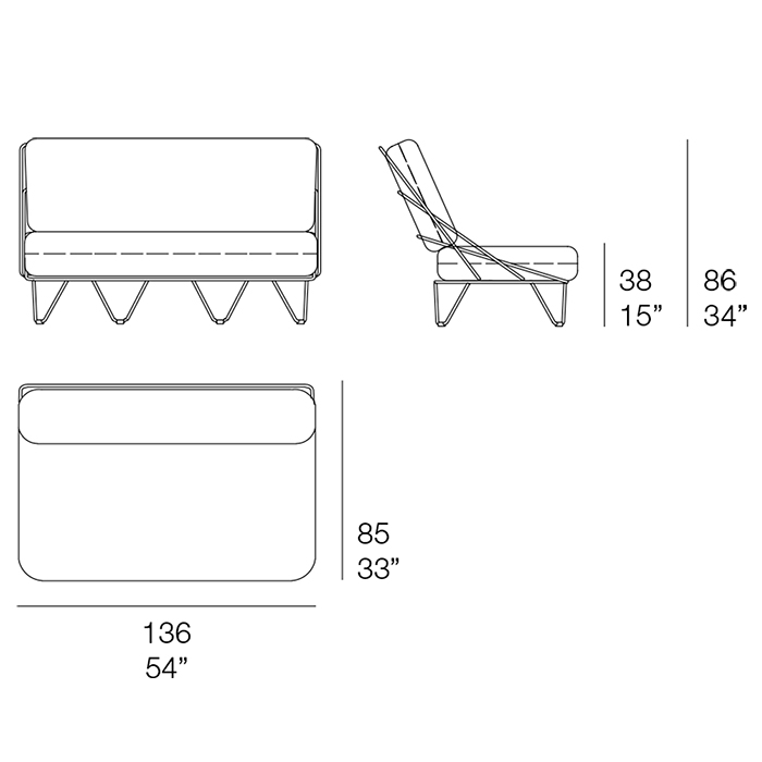 Ambos se acoplan a su vez a la liviana y casi imperceptible estructura de varillas de acero mediante otra cremallera, una cuestión importante en diseños a ras de suelo para que todo el conjunto se mantenga fijo. Los cojines están hechos de una tela especial para resistir al exterior y son desenfundables. Esto permite que se puedan lavar fácilmente o que se puedan cambiar por un juego de otro color de la gama de tonos que ofrece la línea Valentina Outdoor.