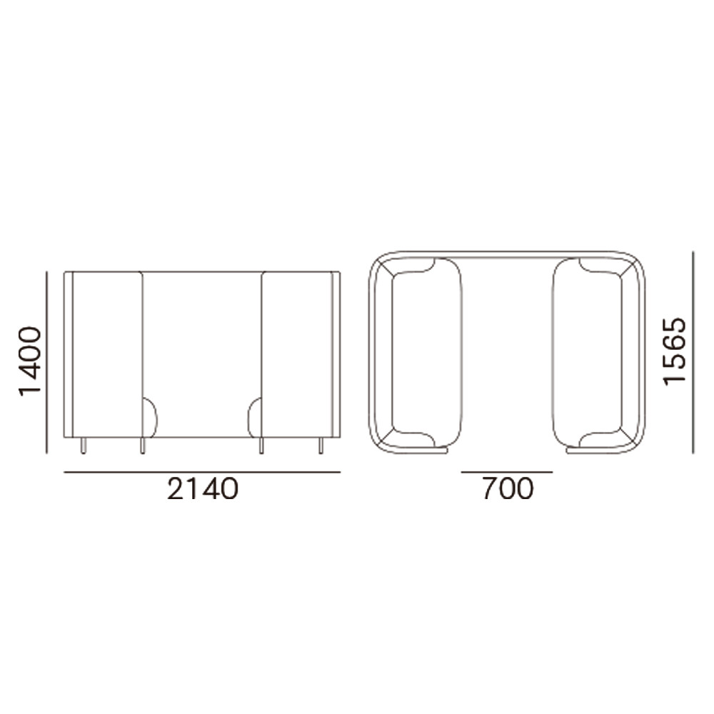 Los dos elementos enfrentados y unidos por un panel se le puede acoplar como accesorio una mesa de trabajo, pensado para acoger reuniones informales en zonas de descanso.