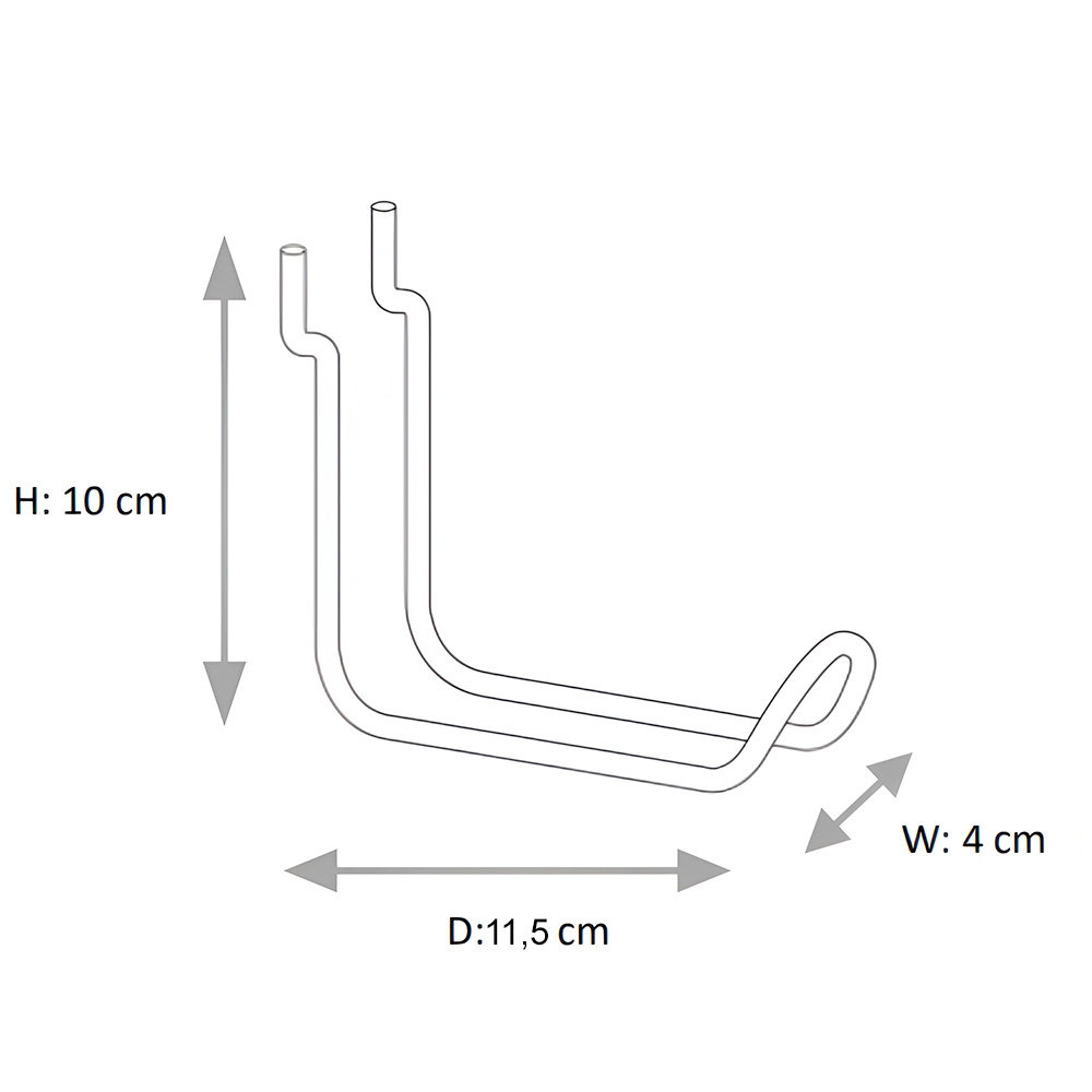 Está disponible en un tamaño con las siguientes dimensiones: ancho 4 cm, alto 10 cm y profundidad 11,5 cm (cuando el gancho está fijado al panel posterior).