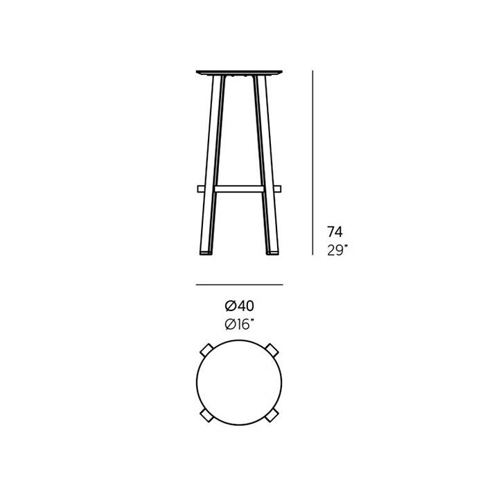 Taburete alto de aluminio diseño de Borja Garcia. Dimensiones: Ø40x74h cm.