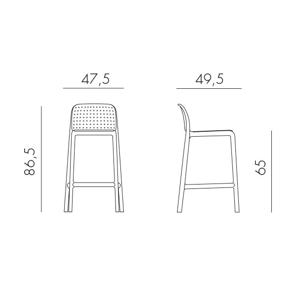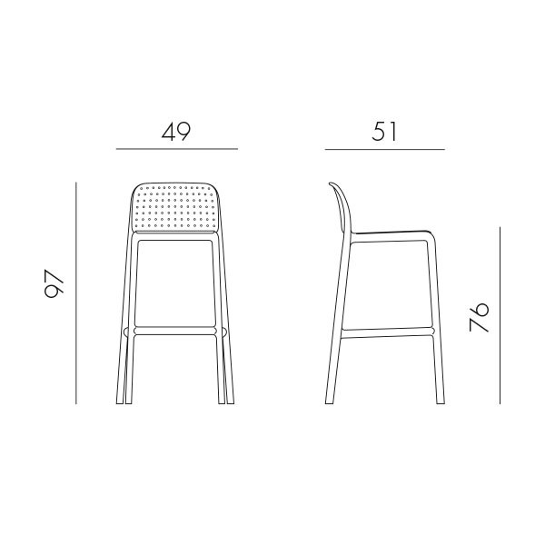 El taburete apilable Lido de Nardi está hecho de resina de fibra de vidrio con un patrón de agujeros en el asiento y respaldo y que hace referencia al suave acolchado textil. La estructura tubular es sin costuras y de generosas medidas.