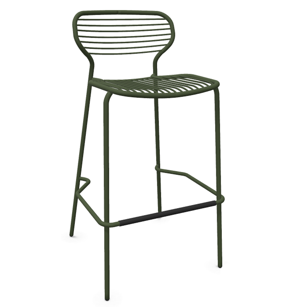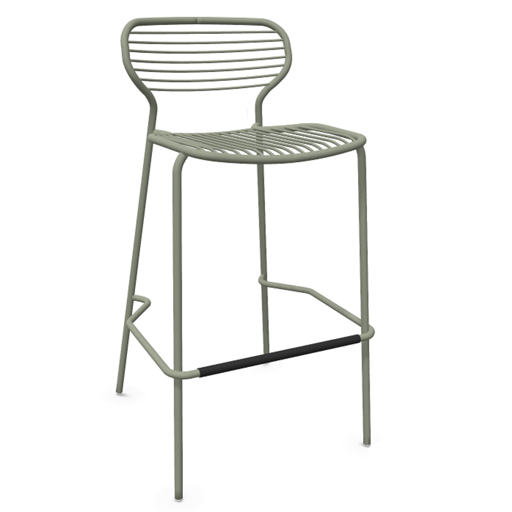 Taburete alto de acero pintado apto para exteriores. Dimensiones: 53x55x101h cm