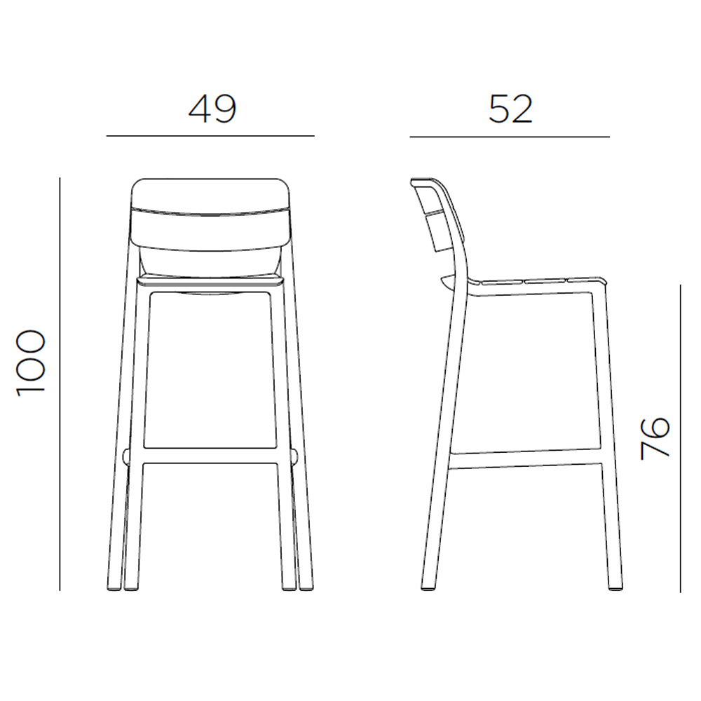 Taburete de exterior en polipropileno fiberglass. Dimensiones: 49x52x100h cm.