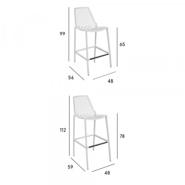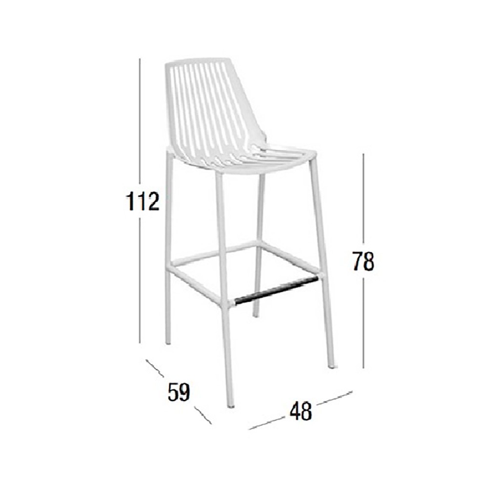El taburete de terraza Rion de Fast está fabricado en aluminio lacado con patas en acero inoxidable.