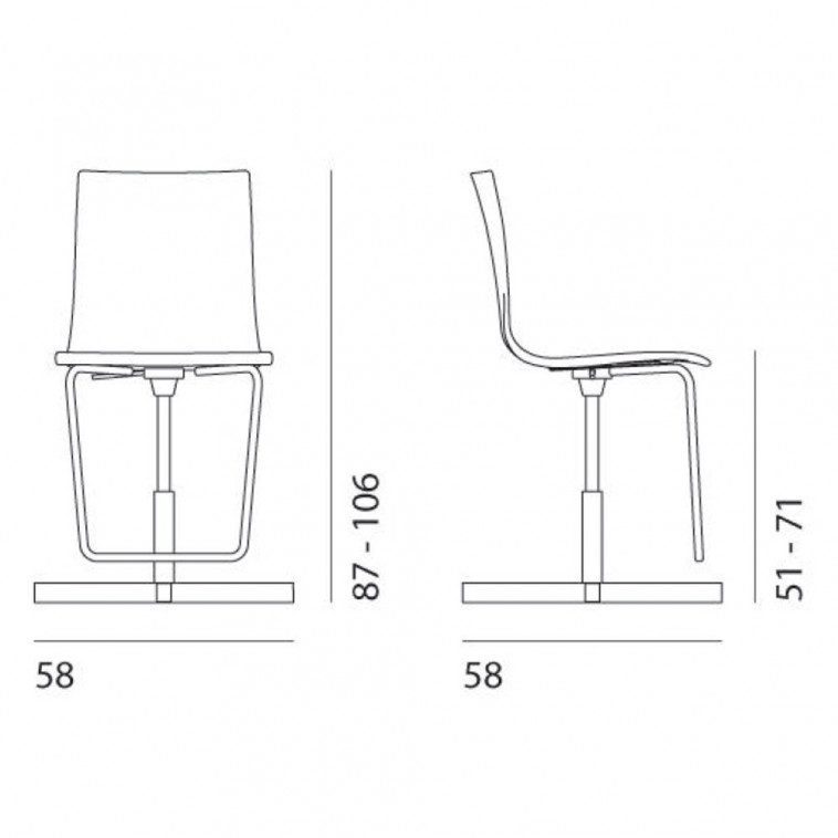 Taburete giratorio altura regulable con asiento tapizado. Dimensiones: 58x58x87/106h cm.