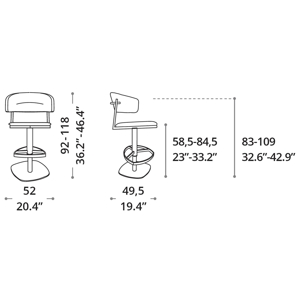 Taburete Petra de diseño con dispositivo de elevación a gas. Gracias a los suaves y resistentes revestimientos en telas de alta calidad, son una excelente opción para una decoración moderna y dinámica, capaz de adaptarse a cualquier estilo. Petra es un taburete con elevación a gas, base y reposapiés de metal. Asiento y respaldo tapizados en diversas terminaciones.