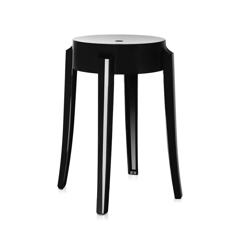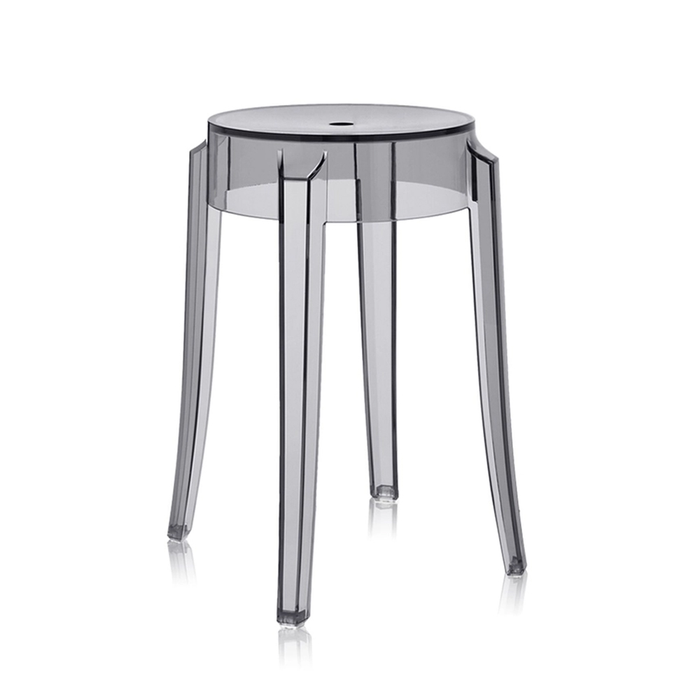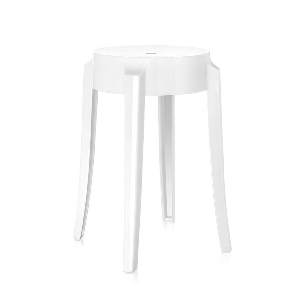 Charles Ghost es el taburete que imita los asientos del siglo XIX. La línea de la pata redondeada y ligeramente ondulada es representativa del taburete clásico. Está disponible en tres alturas distintas: desde el taburete para un encuentro informal y ocasional hasta el taburete para la barra de la cocina o del bar. Se adapta a ambientes de interior y exterior, tanto para el hogar, el contract y para el jardín.