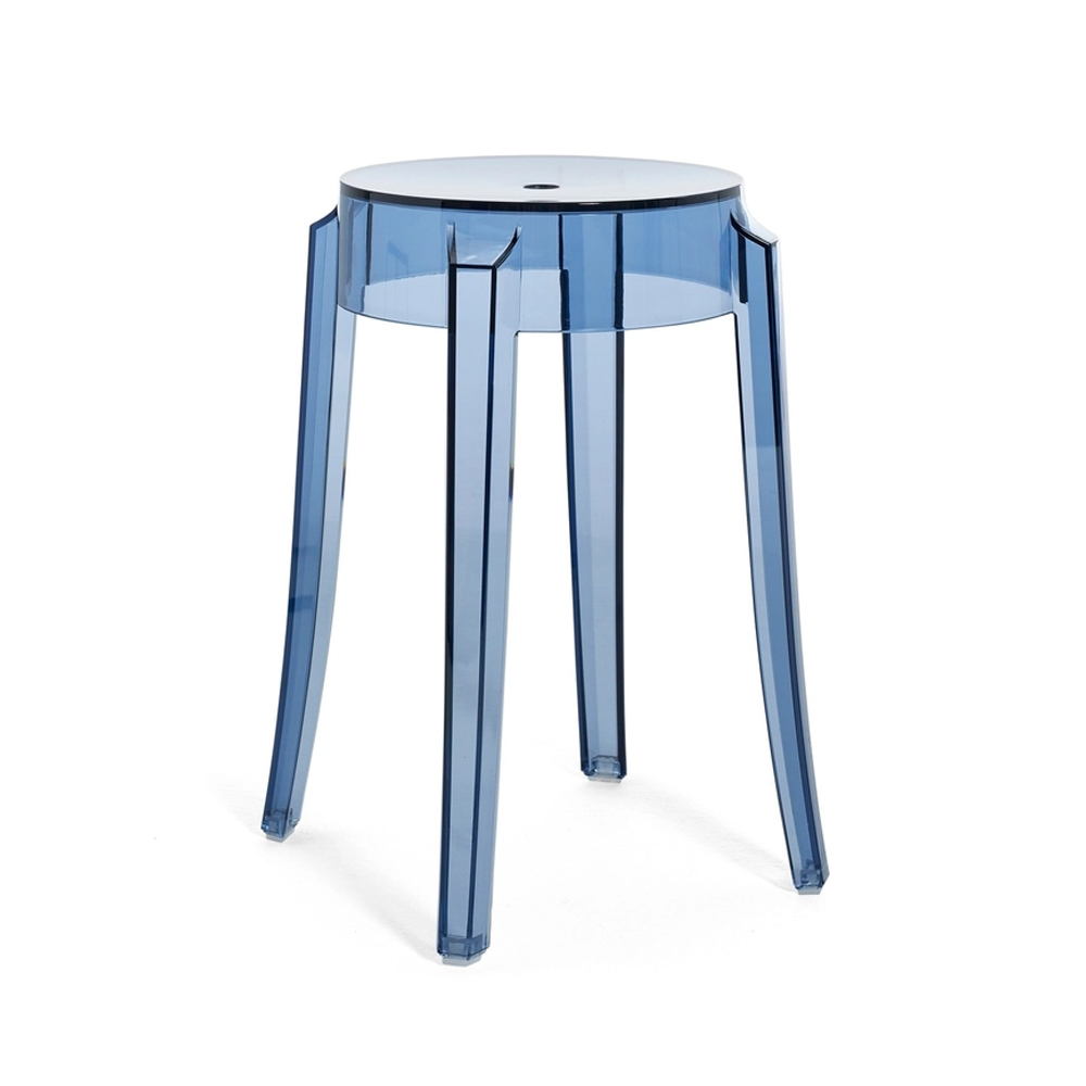 El taburete Charles Ghost, con un estilo de diseño clásico: pata redondeada y ondeada. Formada por un bloque transparente de policarbonato muy duradero. Se adapta tanto a cualquier tipo de decoración gracias al acabado transparente en diferentes colores. Disponible en 3 alturas diferentes.
