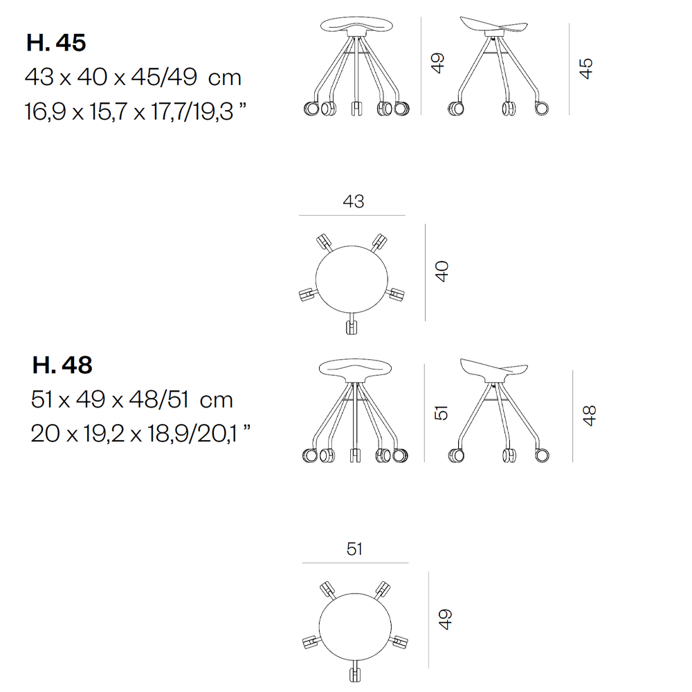 Taburete bajo giratorio con asiento de madera o aluminio. Diseño por Pepe Cortés.