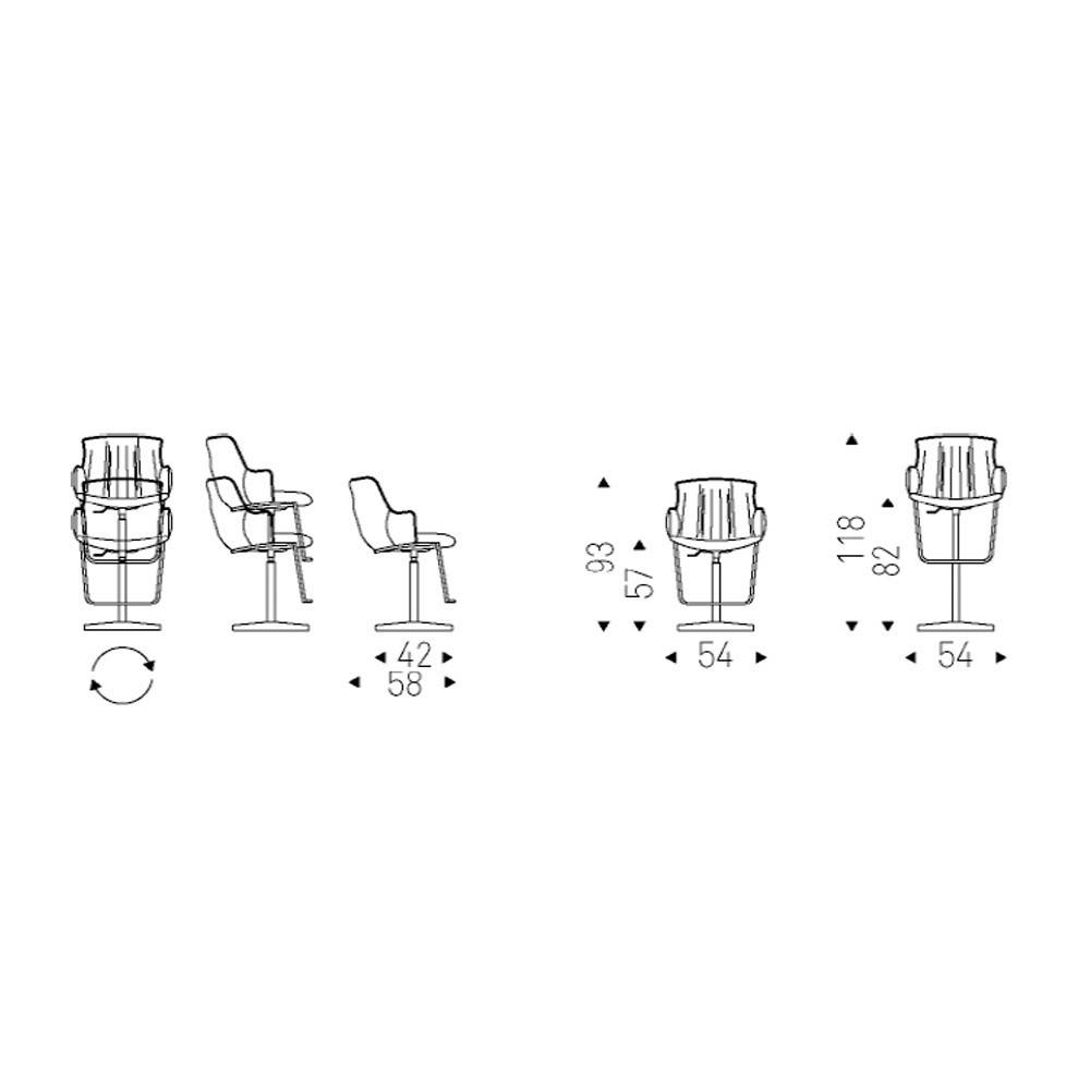 El taburete giratorio Rihanna X forma parte de una amplia colección homónima creada por Cattelan Italia. Su diseño completa cualquier habitación con sus formas sinuosas. El asiento tiene una forma envolvente que apoya la postura, su acabado tapizado tiene unos suaves pliegues en el interior del respaldo que contrastan con la carcasa tersa y redondeada. La estructura y la conexión de las patas enfatizan len cambio la suavidad de sus curvas. En esta versión el taburete Rihanna cuenta con una base giratorio de altura, de 4 radios en aluminio brillo o barnizada. El pistón de gas es de acero cromado (08).