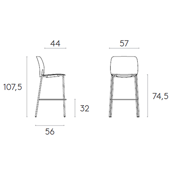 El Taburete con respaldo más amplio, y está hecho de polipropileno, disponible en una selecta gama de colores.