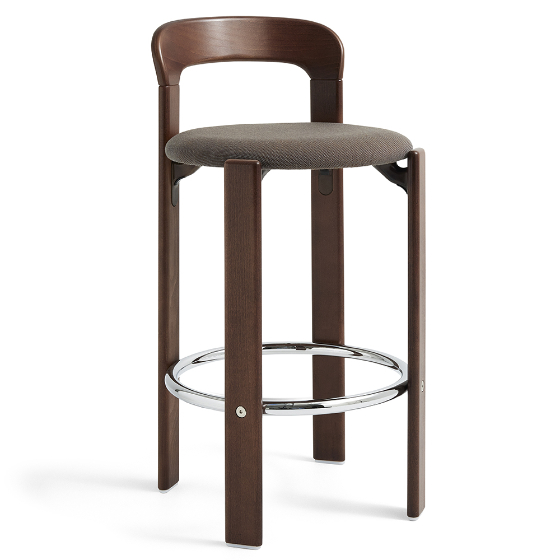 Taburete de bar tapizado de madera contrachapada de haya. Diseño: Bruno Rey.
