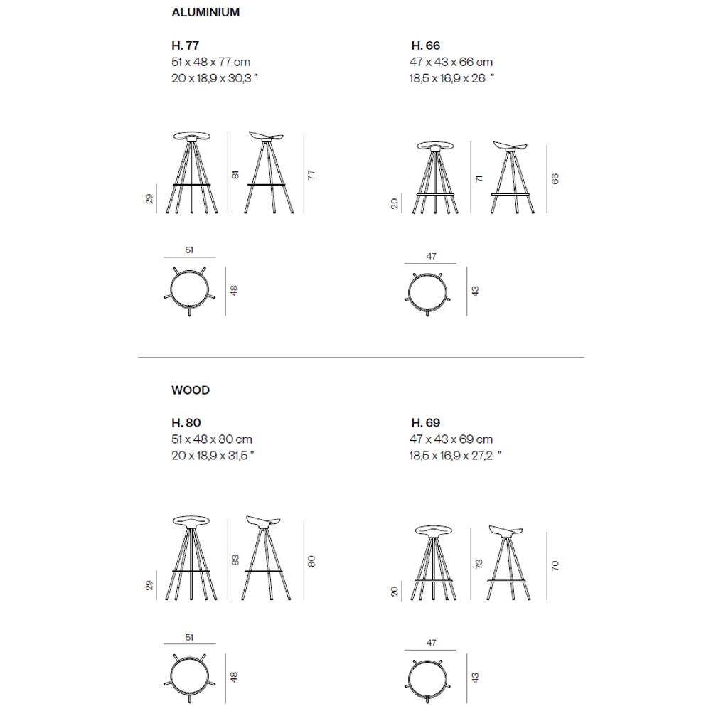 En dos versiones de altura el taburete Jamaica ya se ha ganado un merecido lugar en la historia del diseño español y tiene todavía mucha vida comercial por delante.