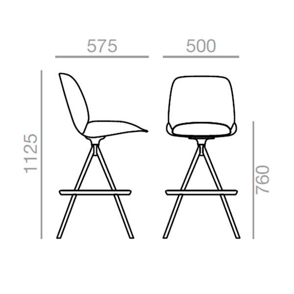 Taburete respaldo alto giratorio en 4 patas de acero. Altura asiento 76 cm.