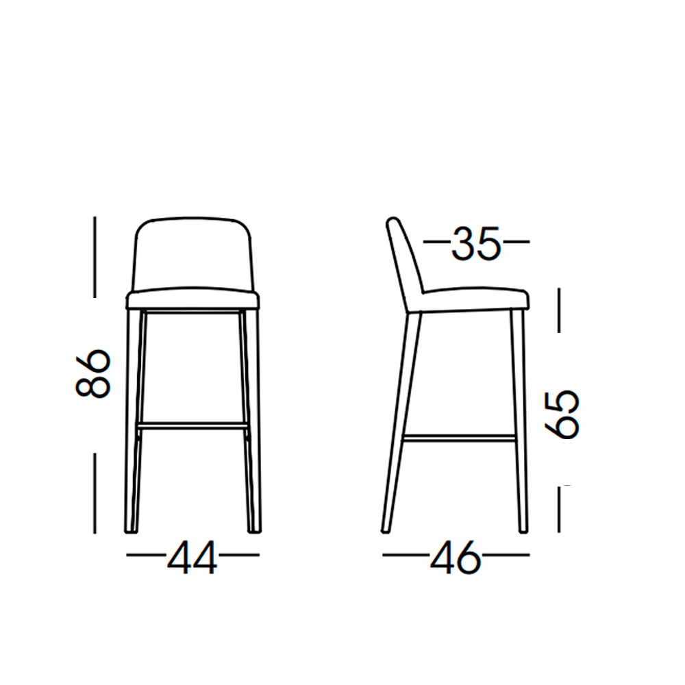 Taburete con asiento tapizado y patas de madera de haya.