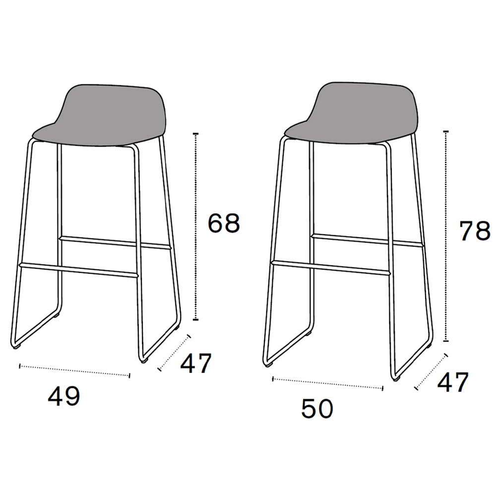 Al igual que las sillas Bisell, los taburetes de esta colección se ofrecen en múltiples combinaciones: con pies de madera o metálicos, con respaldo o sin respaldo, con estructura tapizada o de madera…