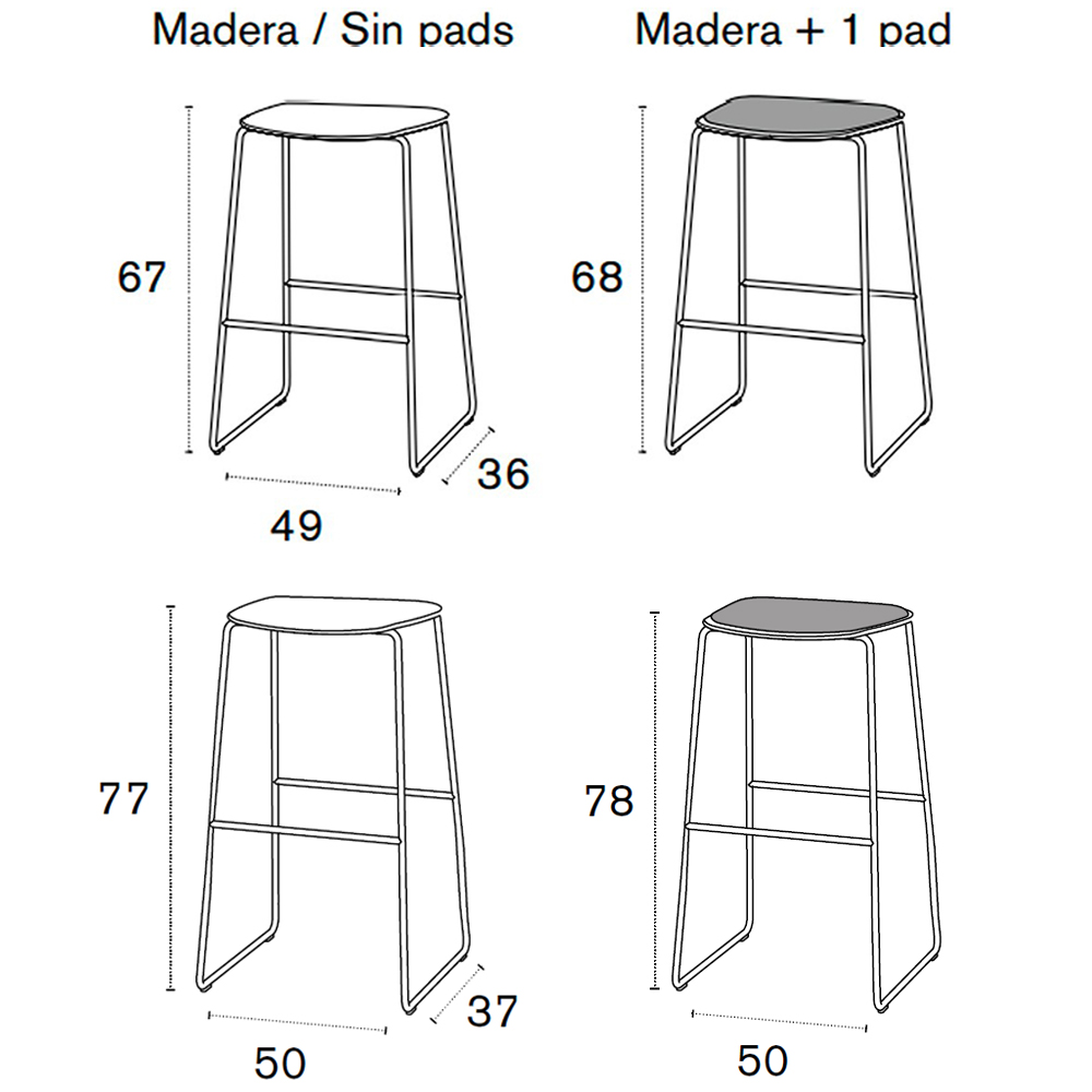 Taburete de madera y con asiento tapizado opcional. Diseñador: Estudi Manel Molina