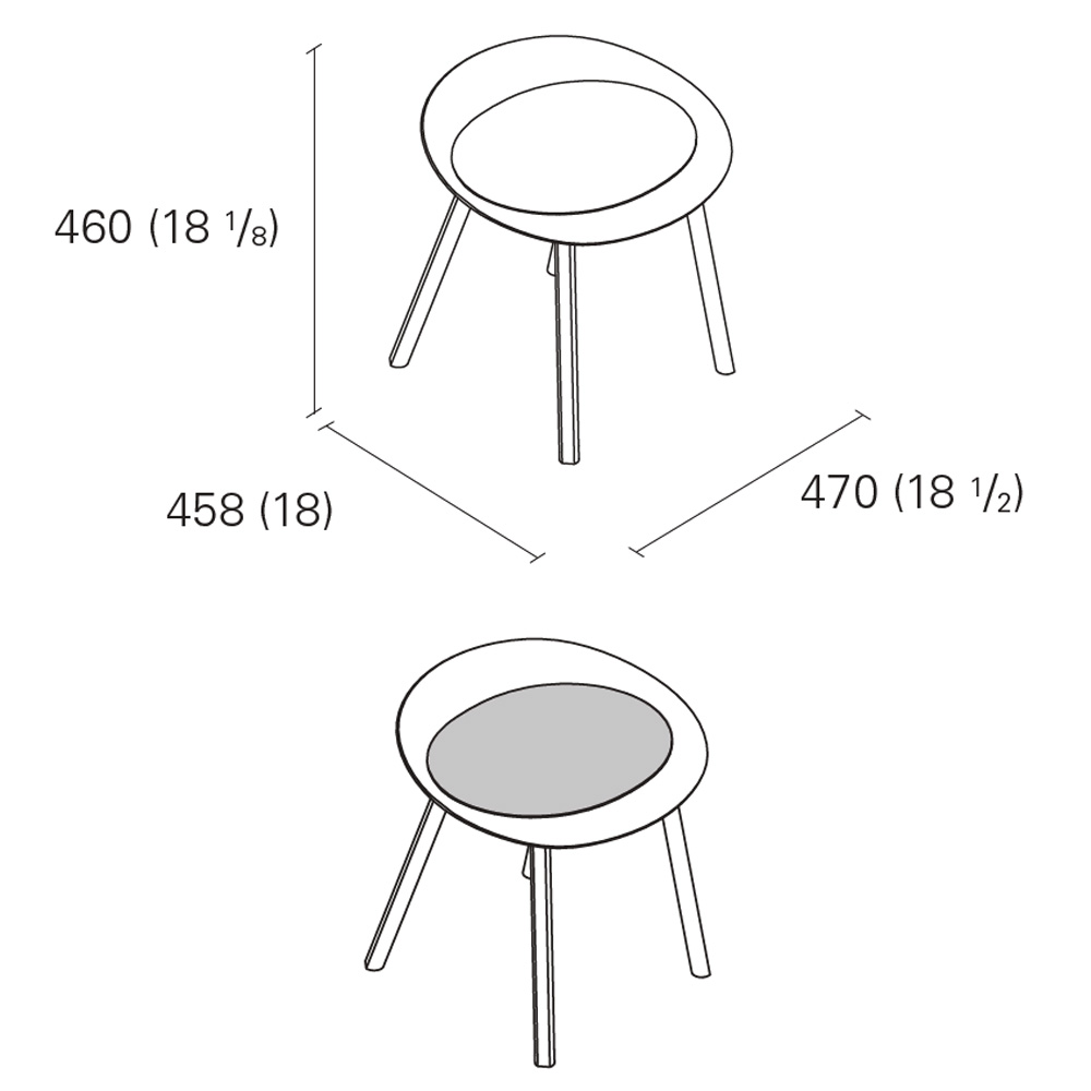 El asiento puede acolcharse según necesidad. El taburete no es apilable y se entrega en una sola pieza.