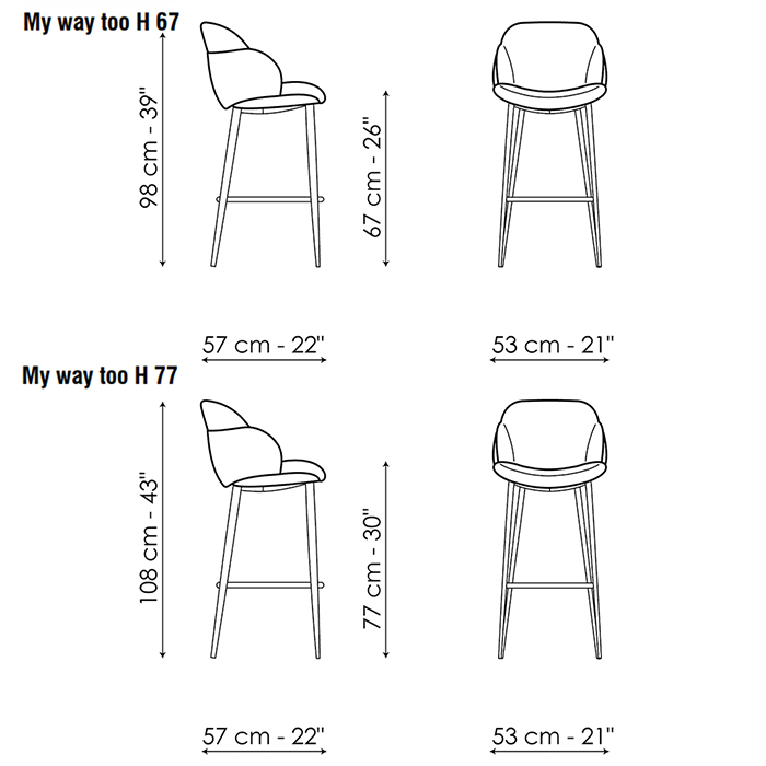 Taburete de acero con respaldo acolchado. Dimensiones 57x53x98/108h cm.