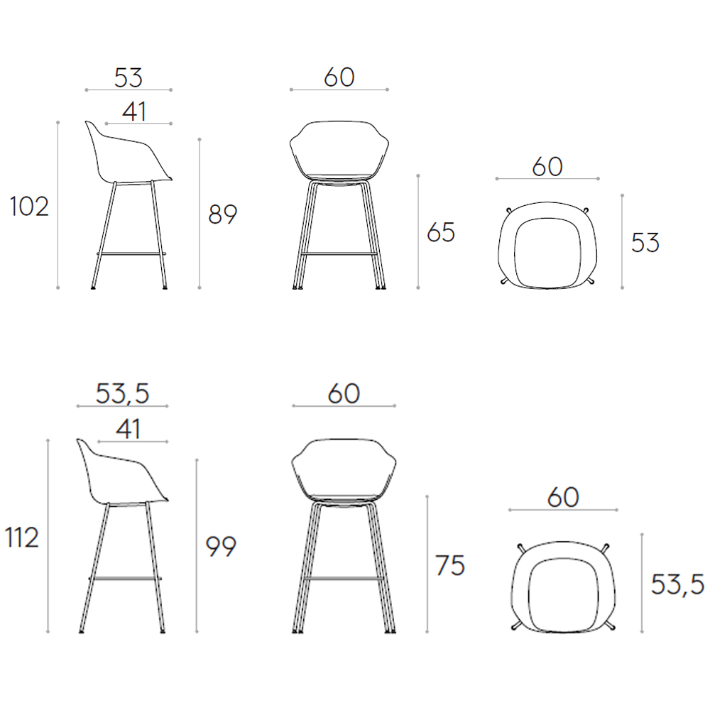 En ésta versión de tabuerete viene tapizado con base metálica.