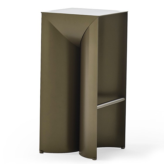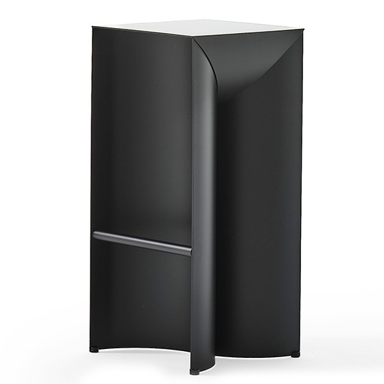 Uccio es un taburete alto de aluminio riguroso y esencial, que como una escultura se convierte en un objeto funcional de uso diario.