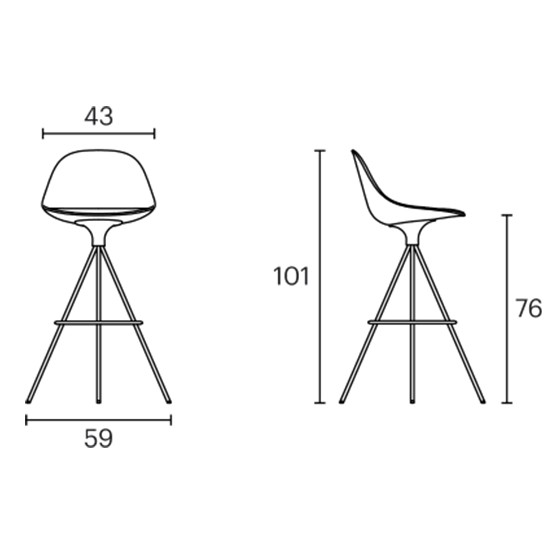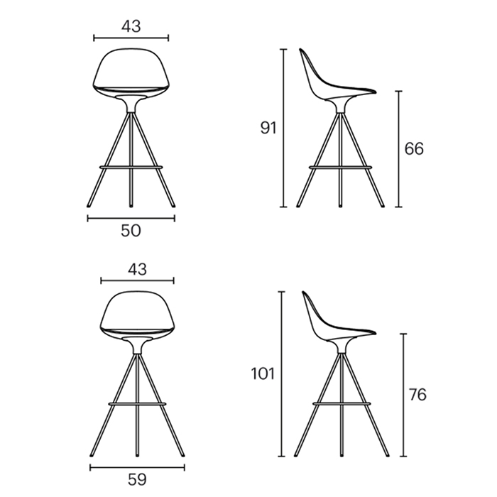 El taburete Mate con base spin, disponible con respaldo bajo o alto, tiene una estructura giratoria de 4 patas de acero cromado o lacado en cualquiera de nuestros colores y cuenta con un gran número de acabados: carcasa de polipropileno con un pad de asiento tapizado.