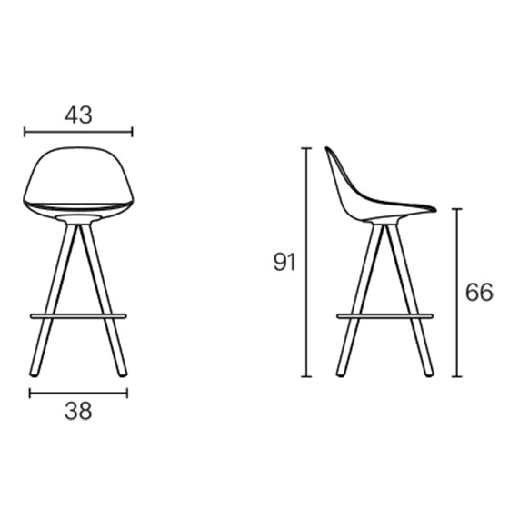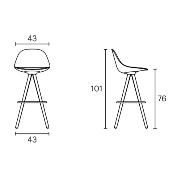 El taburete Mate con base spin wood, tiene una estructura de 4 patas de roble y cuenta con un gran número de acabados: carcasa con respaldo tapizado.