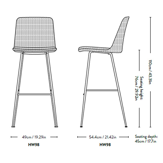 Taburete tapizado y base de tubos de acero. Diseñada por Hee Welling.