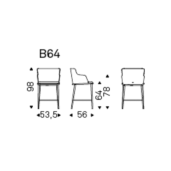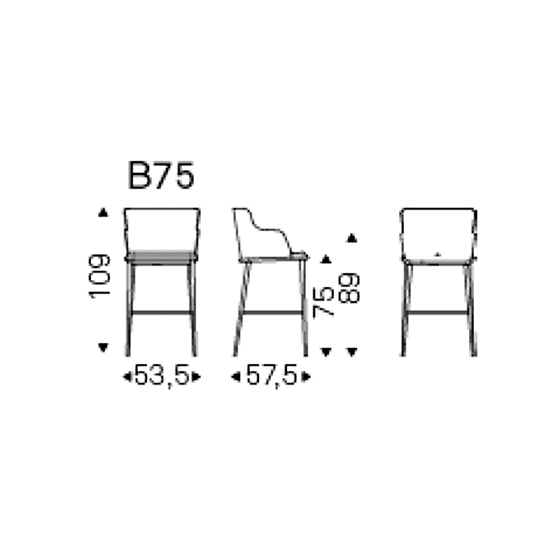 Taburete con brazos, base de acero y asiento tapizado. Diseño de Studio Kronos.