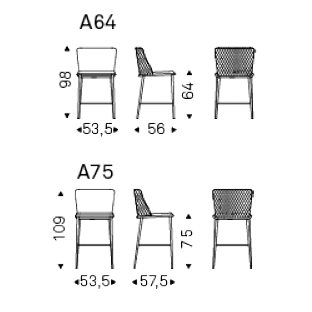 El taburete Magda ML Couture está pensado para barras de cocina y zonas de comedor alto, con una base metálica que aporta ligereza visual. Su diseño sin brazos facilita la movilidad y permite integrarlo con facilidad en distintos espacios.