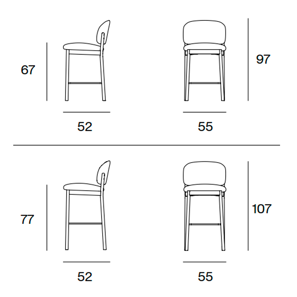 RC WOOD es un taburete alto tapizado en tela con patas de madera.