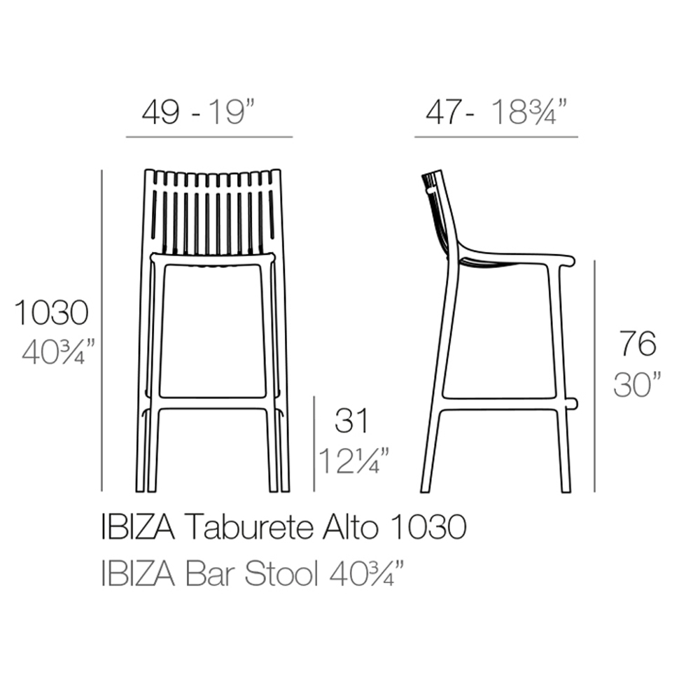 • Alto 49x47x103h cm. Altura del asiento 76 cm.
