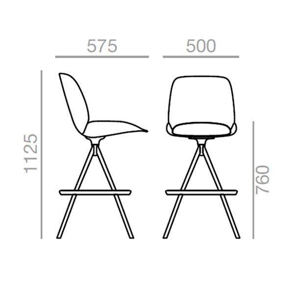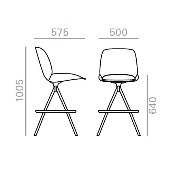 Banqueta con carcasa de termopolímero Eco disponible en diferentes colores ybase giratoria de 4 patas de acero y acabado cromo brillo, blanco o negro. Opción de asiento y respaldo plafonado.