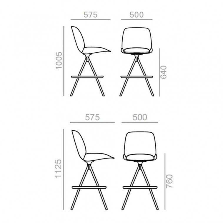 Taburete respaldo alto giratorio en 4 patas de acero. Disponible en 2 alturas.