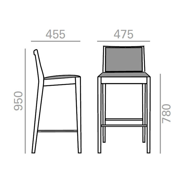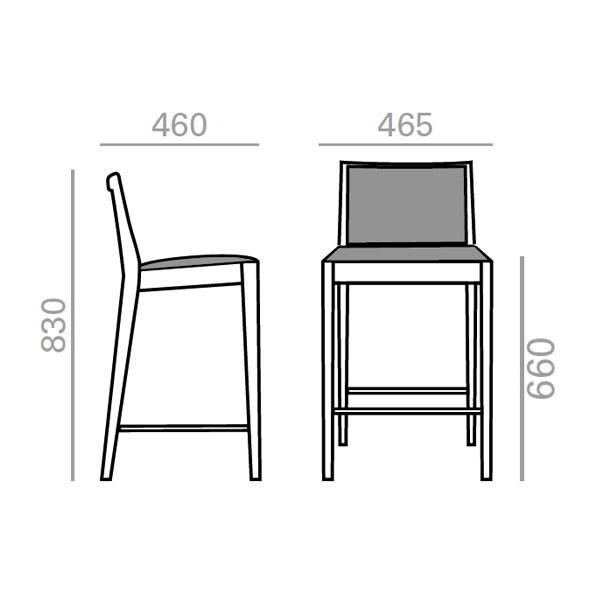 Taburete sobre estructura en madera maciza de haya disponible en 2 alturas.