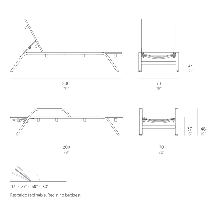 • Tumbona contract: 200x70x37h cm