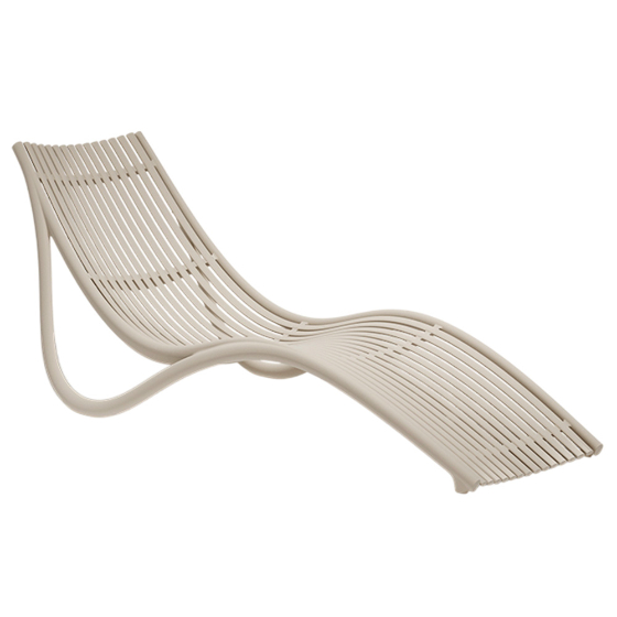 Tumbona apilable de polipropileno reforzado con fibra de vidrio. Dimensiones: 177x73x72h cm.