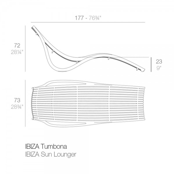 Dimensiones: 177x73x72h cm. Altura de asiento 23 cm.