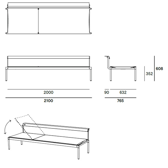 Sofá reclinable para tumbona de 3 asientos. Dimensiones: 210x77x60,5/35h cm.