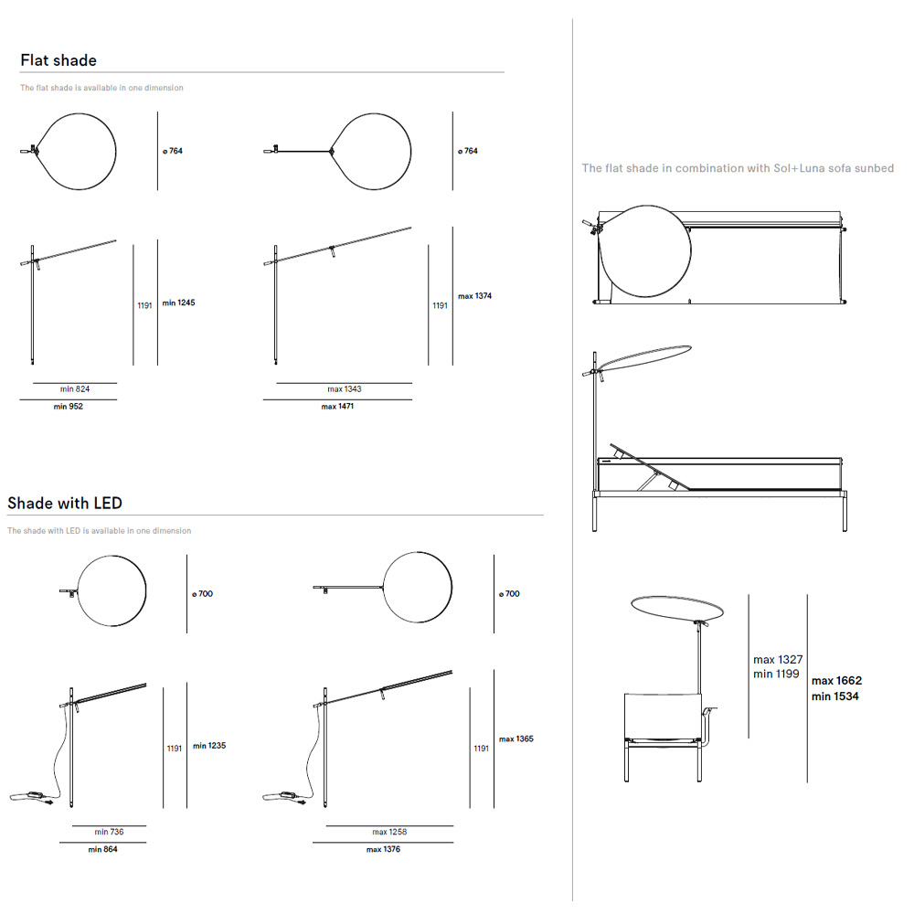 El esbelto marco escultural y las líneas limpias y arquitectónicas de la versión Australis encajan con la estética de los edificios modernos, los entornos urbanos y los hoteles boutique. Los accesorios pueden utilizarse para crear sombra, añadir iluminación y proporcionar superficies para las bebidas.