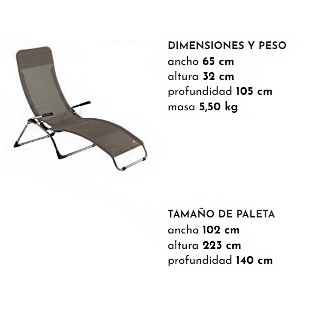 Tumbona exterior reclinable 2 posiciones. Dimensiones: 65x105x32h cm.