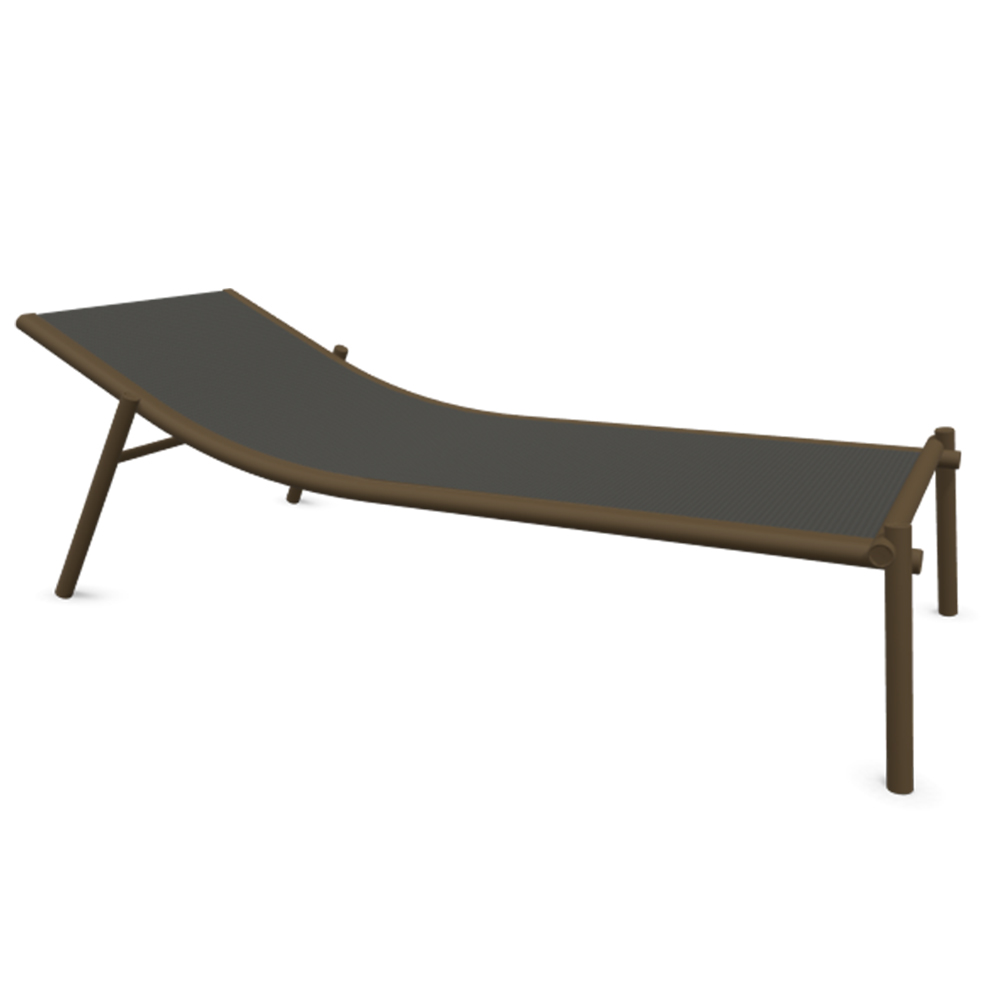 Tumbona estructura de aluminio con tejido en Emu.tex. Dimensiones: 92x203x64h cm.