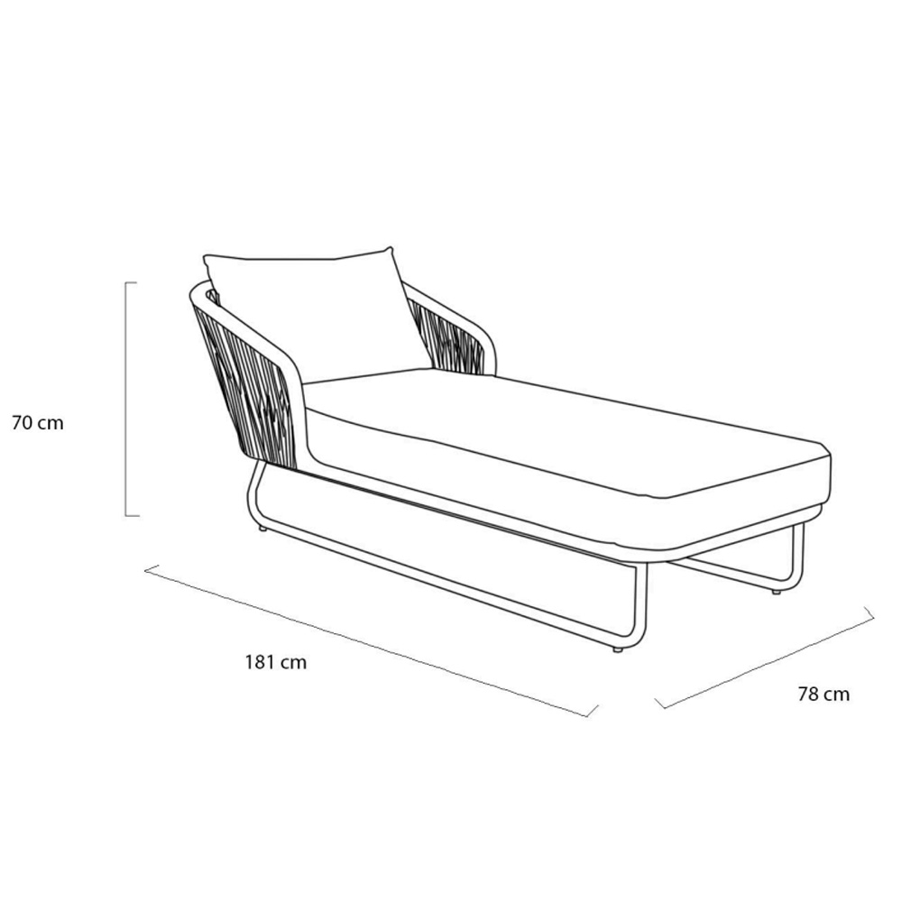 Tumbona con estructura de aluminio gris oscuro y respaldo de cuerda. Dimensiones: 78x181x70h cm.