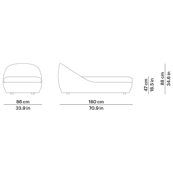 Tumbona con estructura de aluminio lacado y trenzado en fibra Shintotex® Round de 6 mm, disponible en los acabados Moss Brown y Ash Grey. Incorpora cojines de asiento y respaldo confeccionados en espuma de poliuretano de alta resistencia (35 kg).