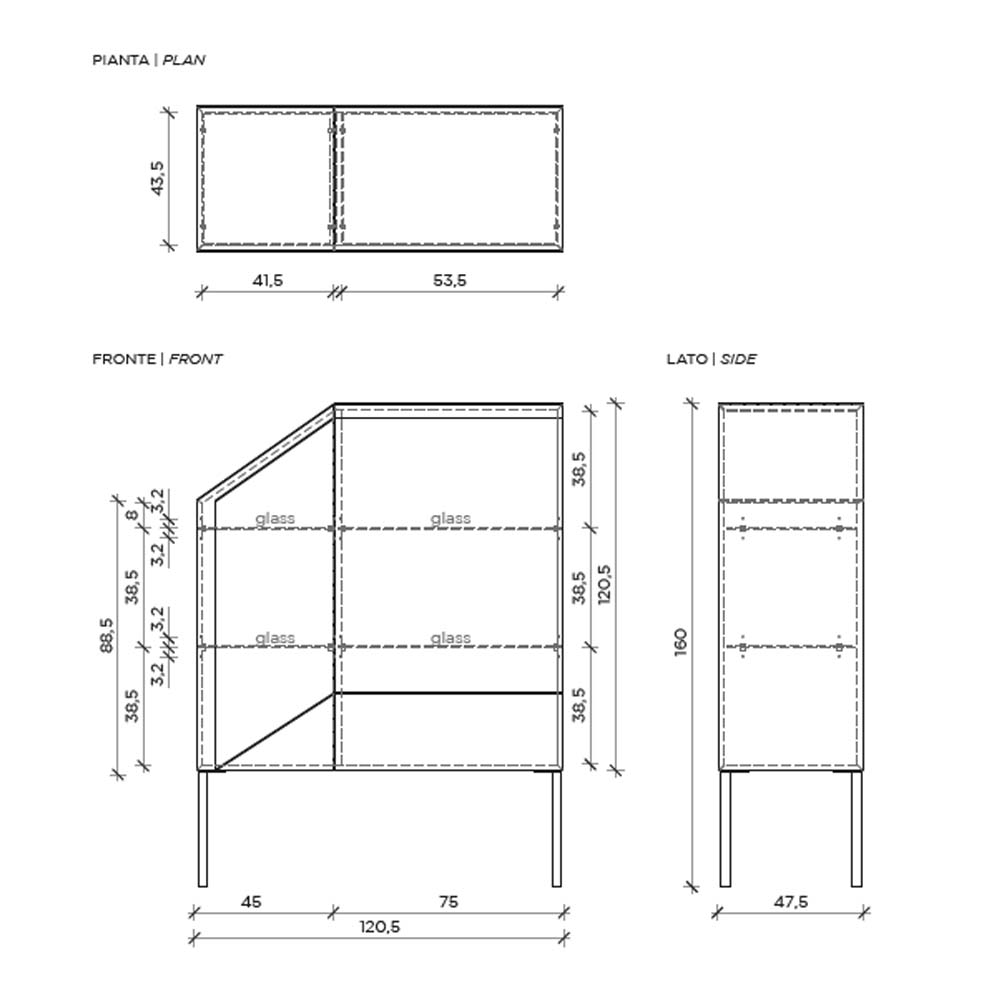 Ritratti un contenedor en MDF enchapado con madera de tilo con acabado lacado brillante y mate. Esta versión de contenedor tiene 2 puertas y 4 estantes internos.