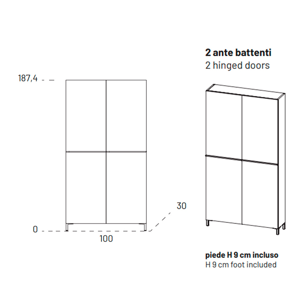 Zapatero condos puertas de melamínico o lacado. Dimensiones: 100x30x187,4h cm.
